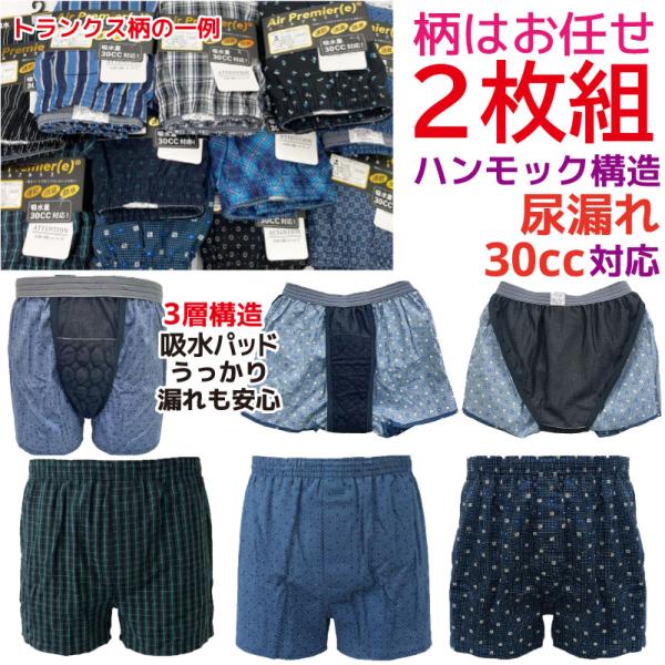 尿漏れパンツ 失禁パンツ 尿もれパンツ 男性用 男性 メンズ 紳士 前開き 吸水パッド パンツ 消臭 防臭 シニア お任せ柄 2枚組 セット トランクス ヤマダ