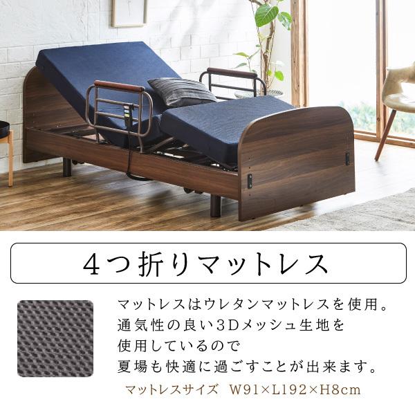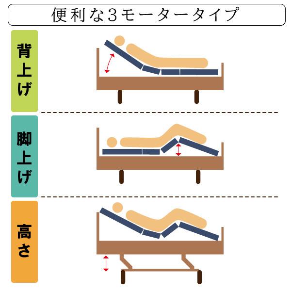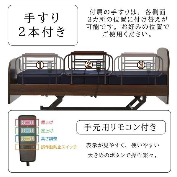 開梱設置付 電動ベッド 3モーター 介護用ベッド リクライニング シングル フレーム+ウレタンマットセット 手すり付 リモコン付 高さ調整 キャスター無 ローザン