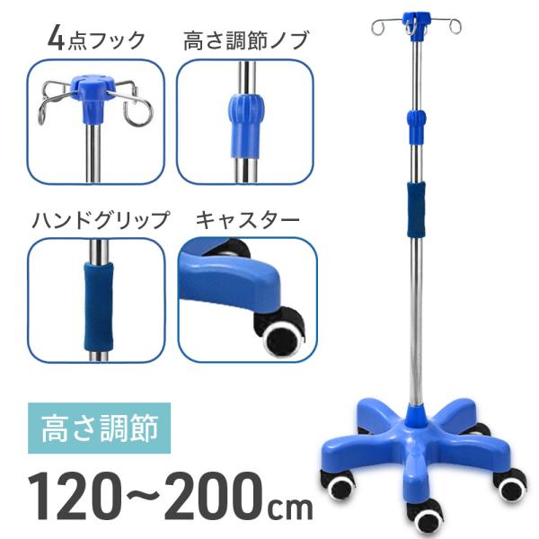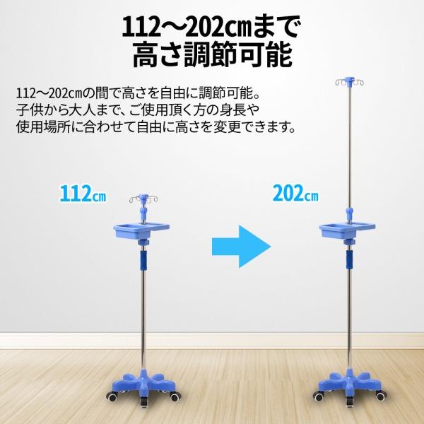 点滴スタンド キャスター 在宅 点滴台 点滴棒 点滴セット 点滴ノズル 輸液スタンド 点滴 スタンド 高さ調節 112-202cm イルリガードル台 IVスタンド