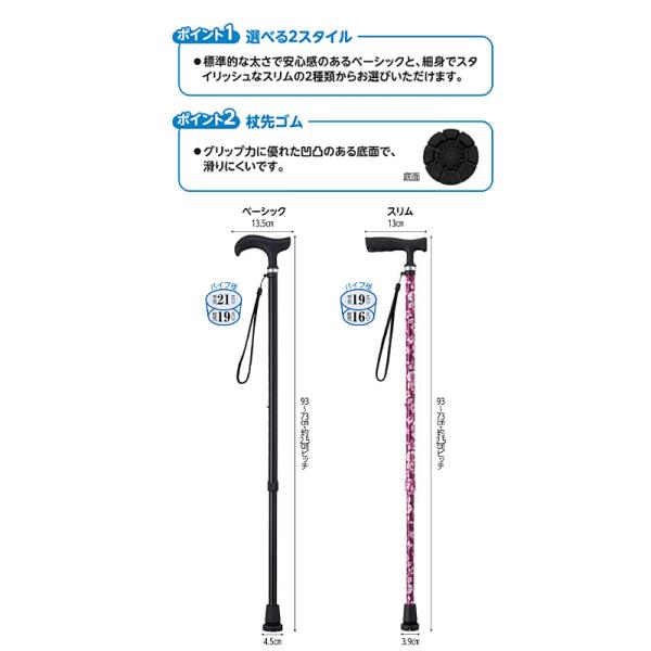 杖 おしゃれ 女性 ステッキ シンプル まごころステッキ 伸縮型 ベーシックタイプ 9791 ウェルファン 介護 つえ 介護用品 高齢者用杖 女性用杖 介護用杖 かわいい