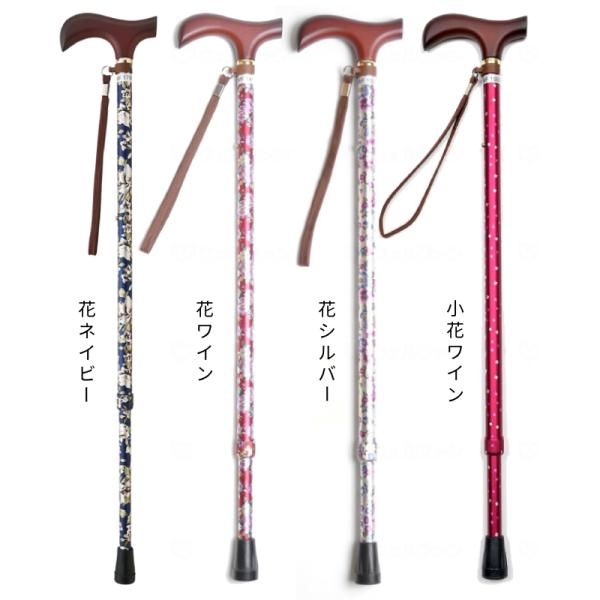杖 ステッキ おしゃれ 花柄 女性 替えゴム付 プレゼント 夢ライフステッキ 柄杖伸縮型 スリムタイプ 9714 ウェルファン 介護用品
