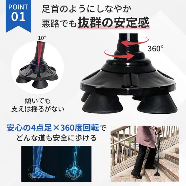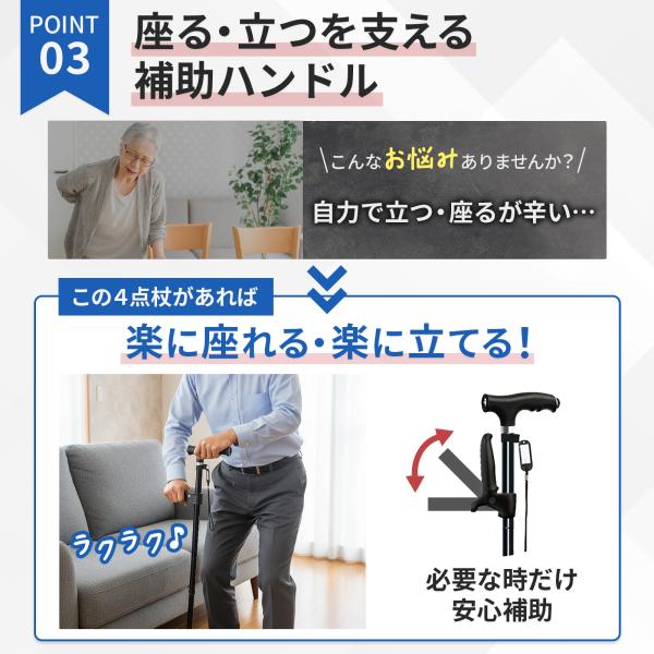 杖 4点杖 介護 自立式 ステッキ 折りたたみ 軽量 歩行補助 伸縮式 四点杖 4本杖 アルミ 合金 自立杖 補助ハンドル付き 敬老の日 プレゼント 女性 男性 高齢者