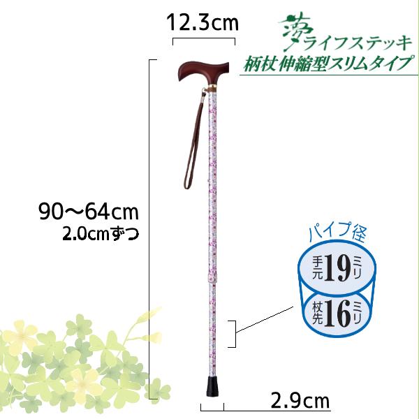 ウェルファン 夢ライフステッキ 柄杖 伸縮型 スリムタイプ 9714 杖 伸縮杖 おしゃれ 敬老 敬老の日 プレゼント