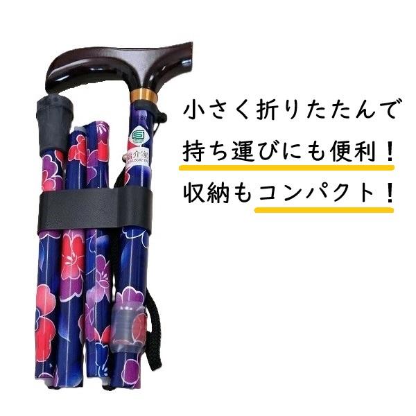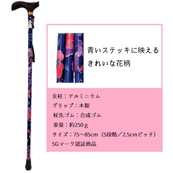 折りたたみ式 伸縮ステッキ おしゃれ 杖 花柄 ステッキ タック ラッピング【在庫限り 大特価】 FUX009606S266 杖 青×花柄 おでかけ 送料無料