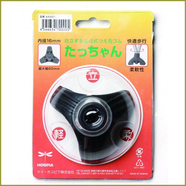 杖 ステッキ 先ゴム 3点 16mm 18mm 黒 たっちゃん 自立する三点式 つえ先ゴム 先端ゴム 杖用 ゴムチップ つえ替え
