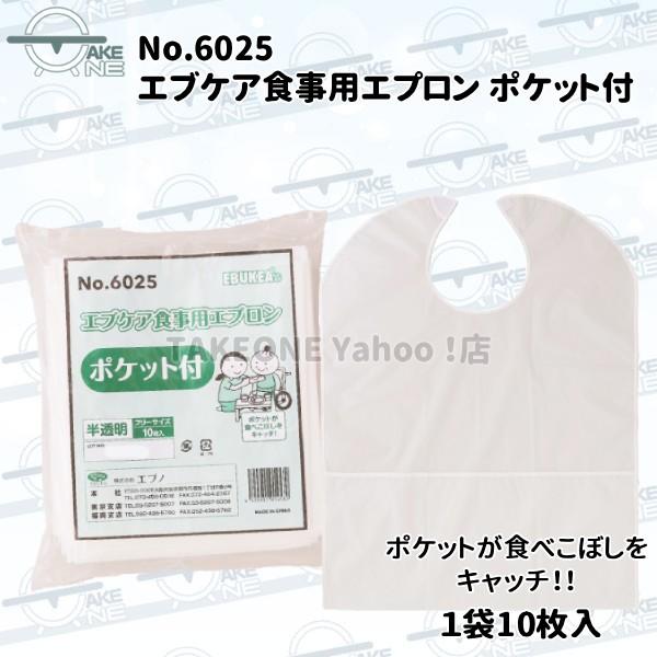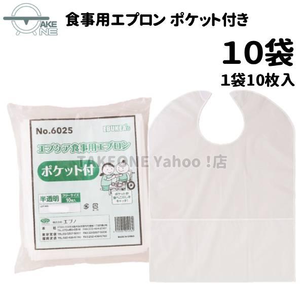 介護用エプロン 無地 大人エプロン エブノ エブケア 食事用エプロン ポケット付 1袋 10枚入 『10袋』 食事介助エプロン 食べこぼし 業務用 作業用 防水 6025