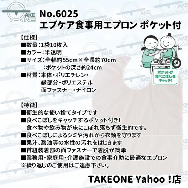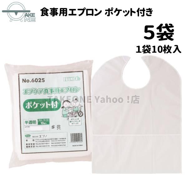 無地 介護用エプロン 大人エプロン エブノ エブケア 食事用エプロン ポケット付 1袋 10枚入 『5袋』 食事介助エプロン 食べこぼし 業務用 作業用 防水 6025