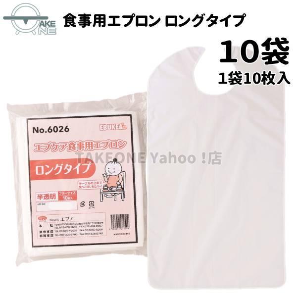 介護エプロン 無地 食事介助エプロン エブノ エブケア 食事用エプロン ロング 1袋10枚入 『10袋』 大人用エプロン 業務用 作業用 防水 6026