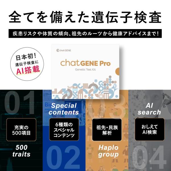 【9,900円OFFクーポン!4月12日(日)まで】遺伝子検査キット 祖先 chatGENE Pro チャットジーンプロ 500項目 遺伝子 ハプロ 民族 ルーツ 癌 病気 肌 髪質 体質