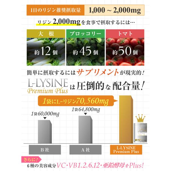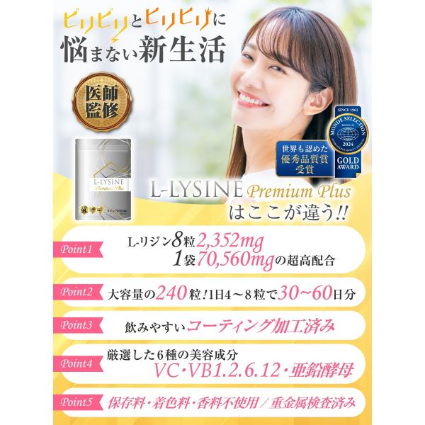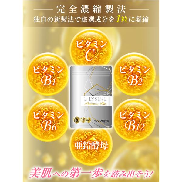 医師監修 リジン サプリ 1日2,352mg L-リジン配合 70,560mg配合 必須アミノ酸 Lリジン プレミアムプラス 240粒 30〜60日分 GMP国内工場製造