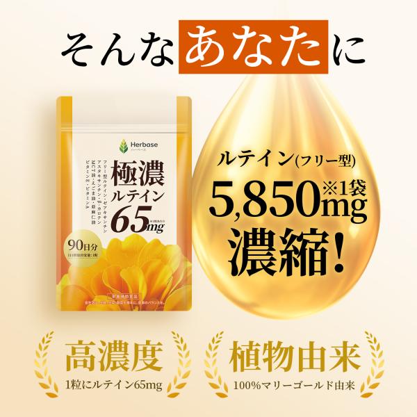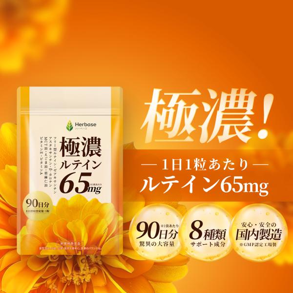 ルテイン サプリ 65mg (90日分) 目 国内製造 極濃 高濃度 フリー体 Herbase (ハーベース) 爆買