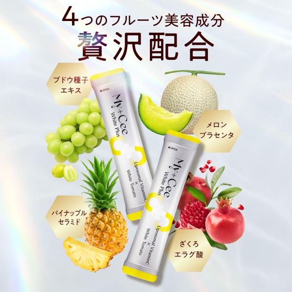 リポソーム ビタミンc サプリ 高濃度 ホワイトトマト 30包 My+Cee マイシー ホワイトプラス グレープフルーツ味
