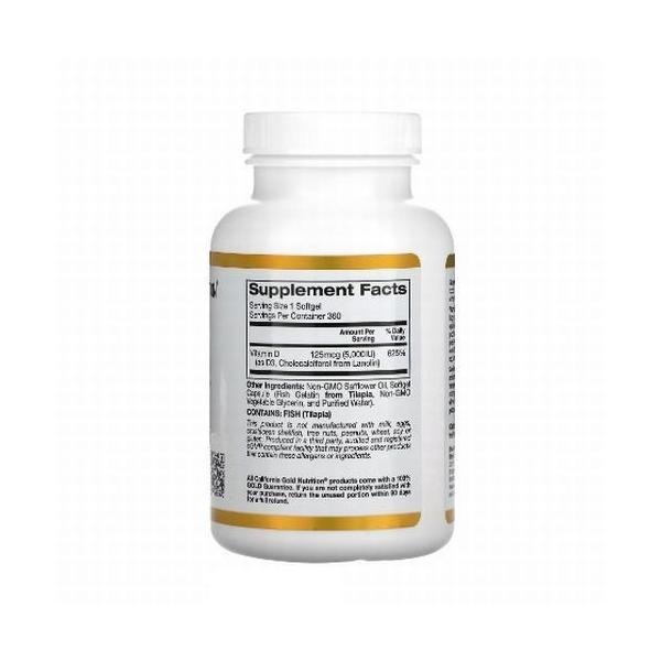 ビタミンD 3 大容量360粒 5000IU 125mcg ソフトジェル 骨 アドオンセット サプリメント 健康食品 California Gold Nutrition