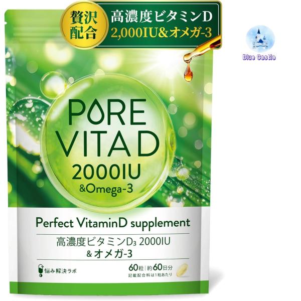 ピュアビタD 高濃度 ビタミンD 2,000IU × オメガ3 サプリ 60日分 ビタミンD3 omega3 人工甘味料無添加 国内製造