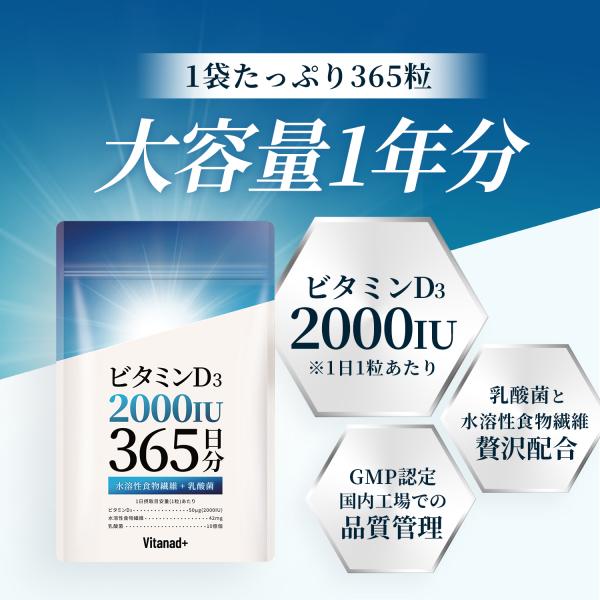 ビタミンD 2000IU 365日分 サプリ ビタミンD3 日本製 Vitanad+(ビタナッド)爆買