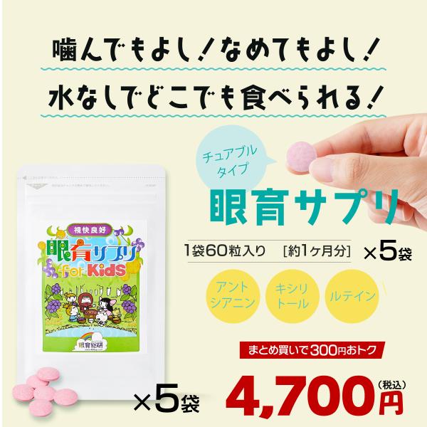 ビルベリー ルテイン 子供 サプリ 眼育サプリ めいく ビタミン 500mg×60粒 5袋セット 視力 目のサプリ 疲れ 眼 栄養 日本製 ラムネ お菓子 感覚