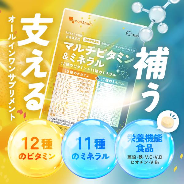 マルチビタミン & ミネラル (約1ヶ月分)ビタミンc ビタミンd サプリメント ビタミンe ビタミンb 亜鉛 鉄 栄養機能食品 カルシウム 葉酸 サプリ ビタミン12種