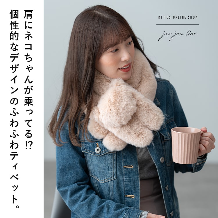 マフラー ティペット レディース フェイクファー 猫モチーフ 差し込み 秋 冬 かわいい おしゃれ 洗える