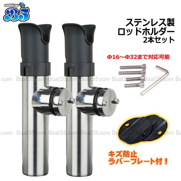 B5 ロッドホルダー 船 ステンレス ロッドキーパー付 ステンレス製 クランプオン 2本セット 16-32mm 六角レンチプレゼント 角度調節可能 送料無料 沖縄除