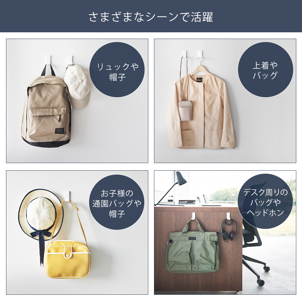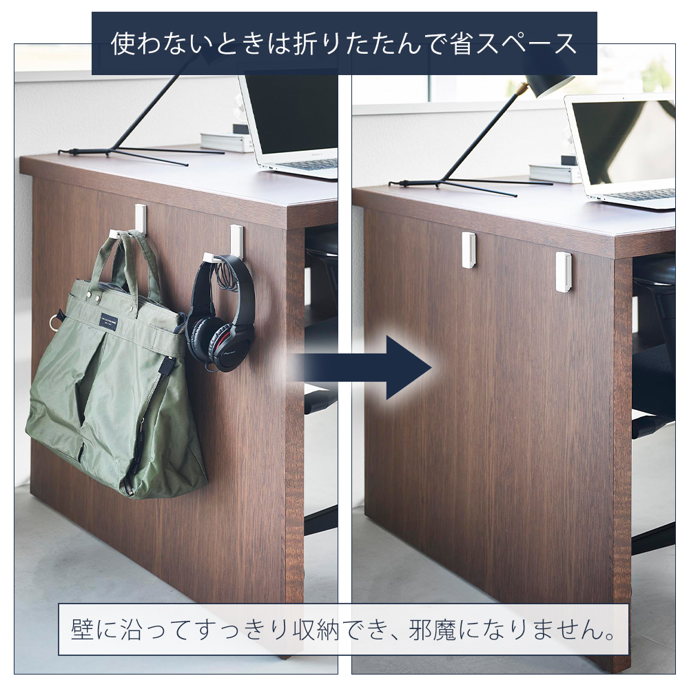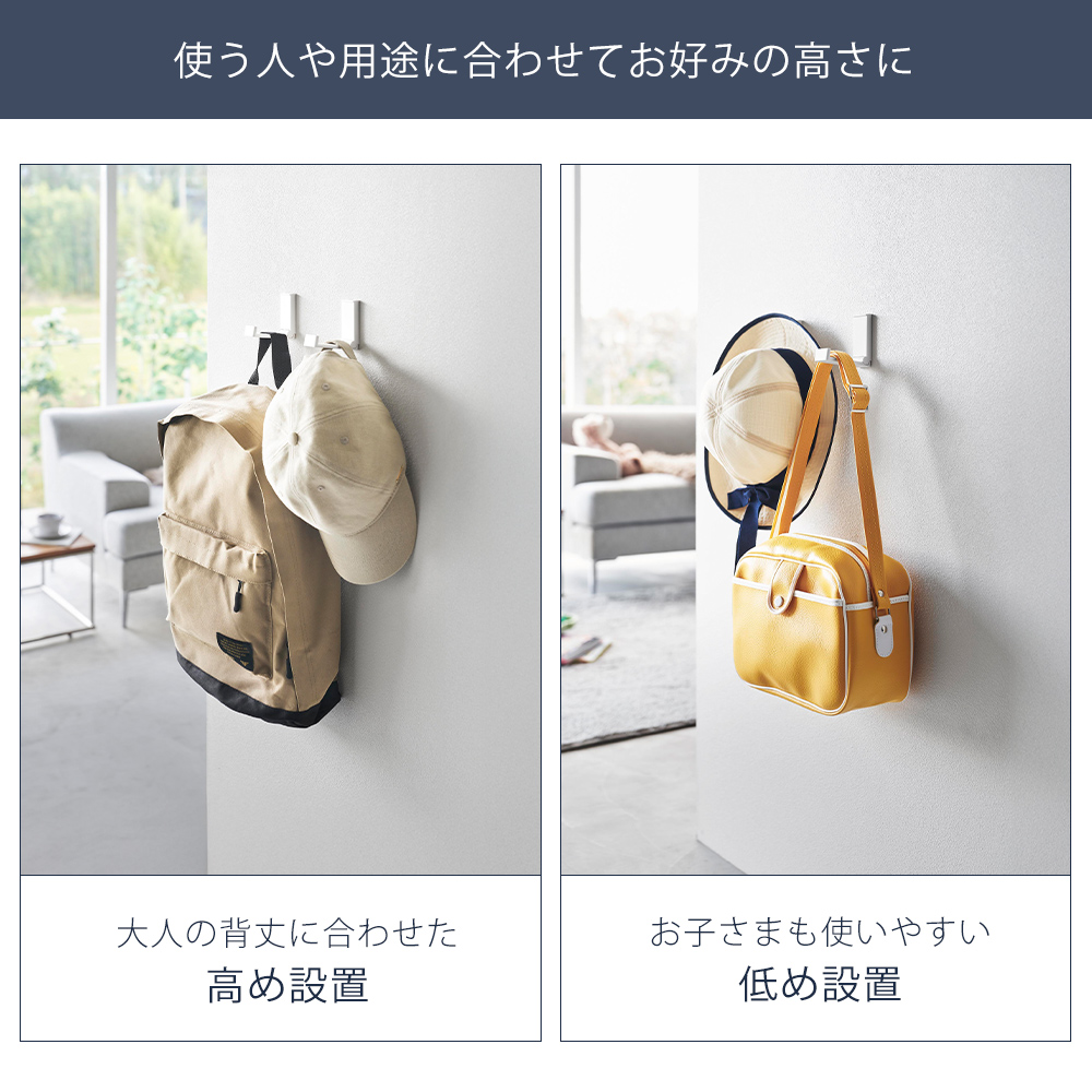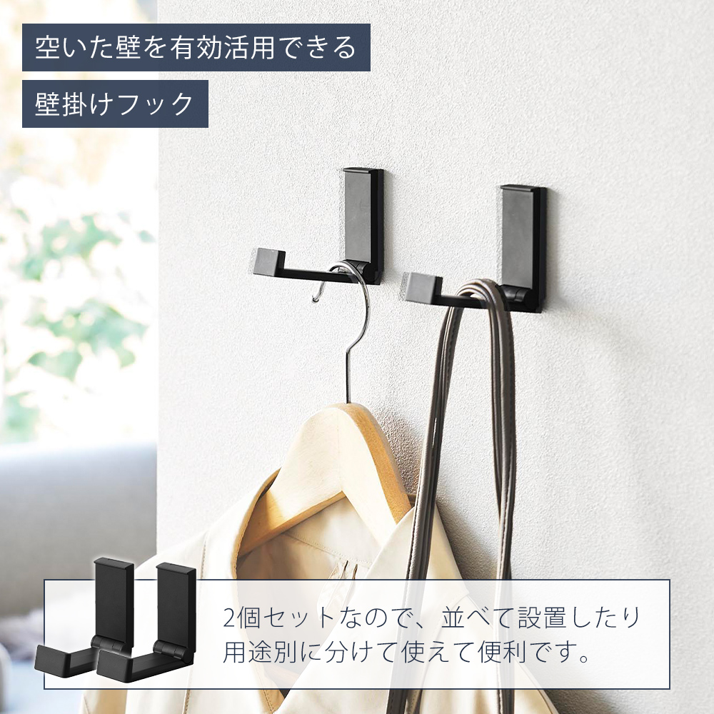 山崎実業 公式 タワー 壁付け折り畳みフック 2個組 tower 石こうボードピン 折りたたみ 賃貸 壁面収納 バッグ 帽子 リュック 10551 10552