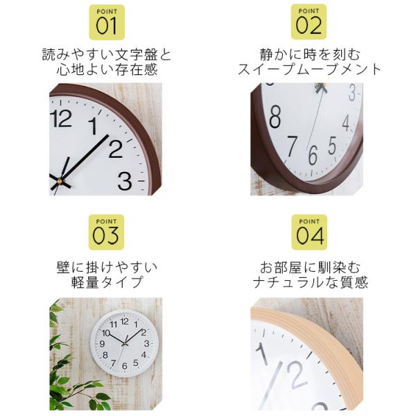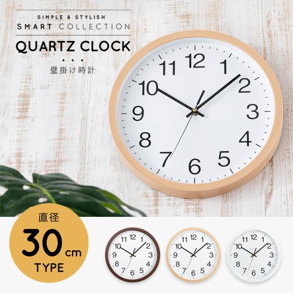 時計 壁掛け 壁掛け時計 おしゃれ 北欧 インテリア 掛け時計 木目調 静音 薄型 軽量 直径30cm シンプル PWCR-30-W