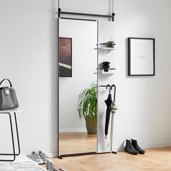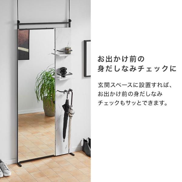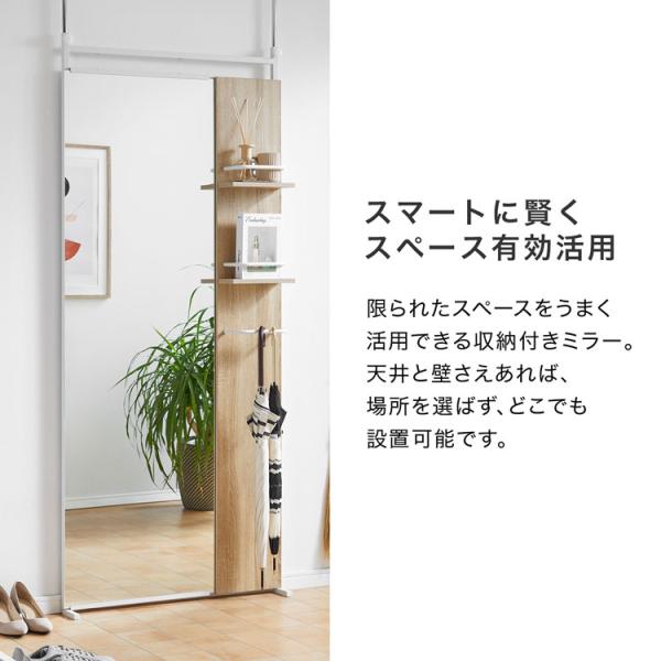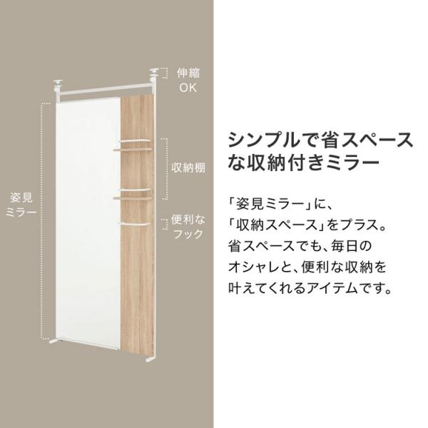突っ張り 鏡 ラック 白 収納 壁面収納 おしゃれ ドレッサー 姿見 ミラー 突っ張り棚 突っ張り棒 スリム 棚 伸縮 壁面 収納棚 幅80cm シェルフ