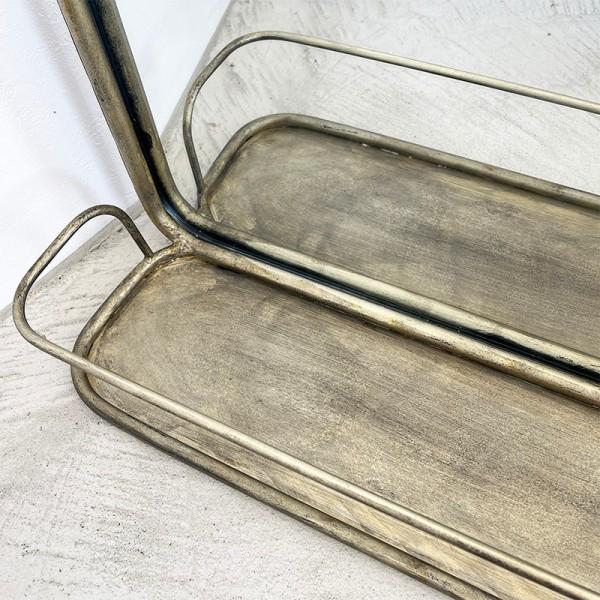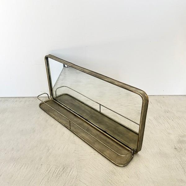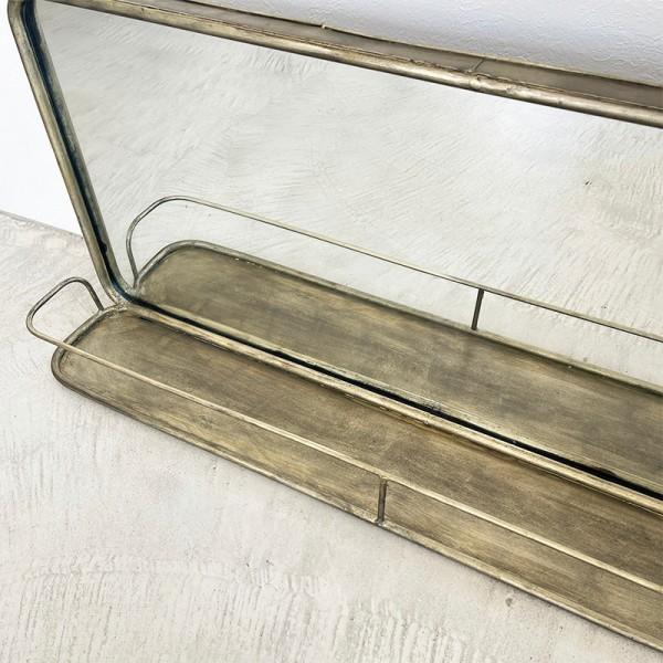 壁掛けミラー 大型ミラー 鏡 バリヤード ウォールミラー 横長 ブロカント アンティーク調 アンティーク風 壁掛け 棚付き アイアン ビンテージ風 シャビーシック