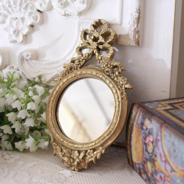 リボン ウォールミラー ラウンド ミラー ゴールド 壁掛けミラー バロック ローズ(136) ロココ調 アンティーク調 雑貨 アンティーク風 輸入雑貨 洋風 ヨーロピ