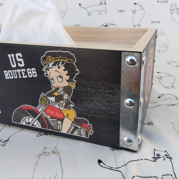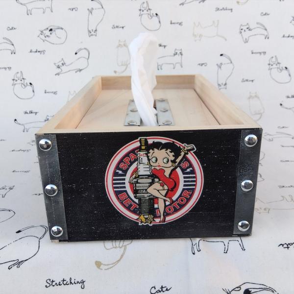 BETTY BOOP ベティブープ ウッド ティッシュケース ボックス 木製 ティッシュケースカバー 小物入れ アメリカキャラクター 調味料入れ インテリア雑貨 ガレージ