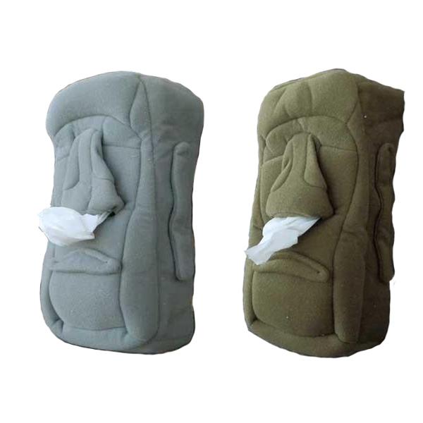 レターパックプラス対応 モアイ ティッシュケースカバー グレー カーキ 面白いティッシュケースカバー 生活雑貨 インテリア雑貨 面白グッズ