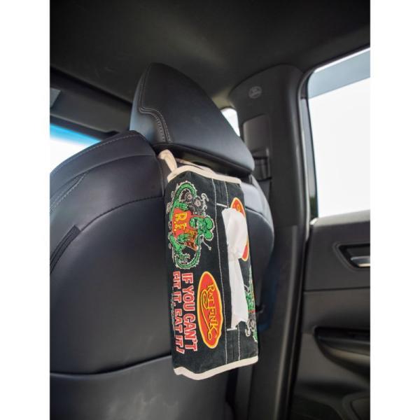 レターパックプラス対応 RAT FINK ラットフィンク ティッシュケースカバー ブラック 黒色 ティッシュケースホルダー 引掛けループ付き マジックテープ コットン