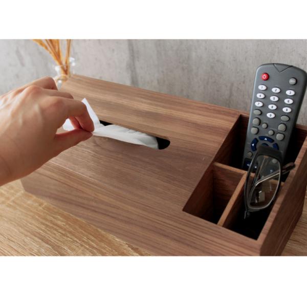 ティッシュケース おしゃれ リモコンラック 木製 ボックス 多機能 ボックスティッシュ 箱 収納付き ティッシュカバー 多目的 文房具 タモ ウォールナット クルブ