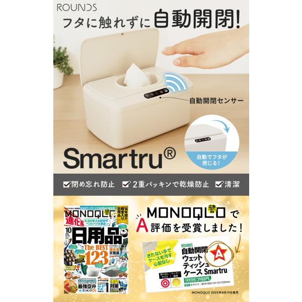 ROUNDS 自動開閉ウェットティッシュケース おしりふきケース Smartru 手をかざして自動開閉 電池式 中身が乾かない 出産祝い 結婚祝い 引っ越し祝い