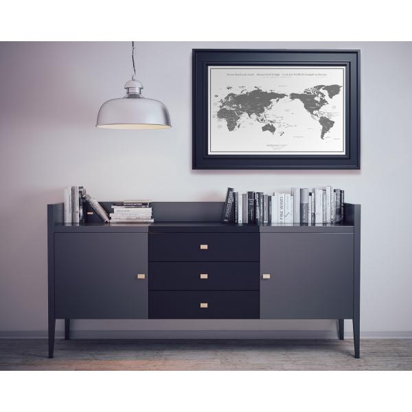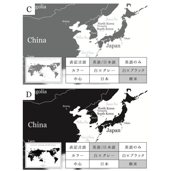 C〜F 世界地図 A1 グレー ブラック ポスター インテリア おしゃれ 国名 白地図 こども 壁 ミニマルマップ