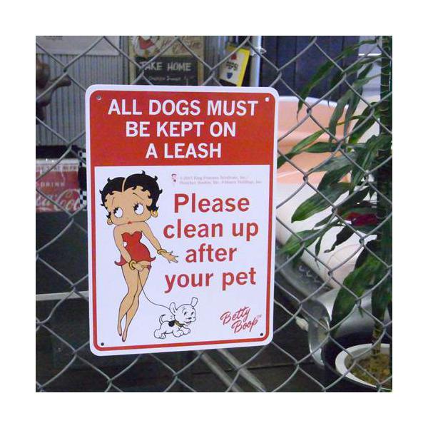 BETTY BOOP ベティブープ プラスチック サインボード バイカー専用駐車場 フン掃除 ペットの糞を後始末しよう 番犬に注意 24時間監視中 看板 メッセージ サイン