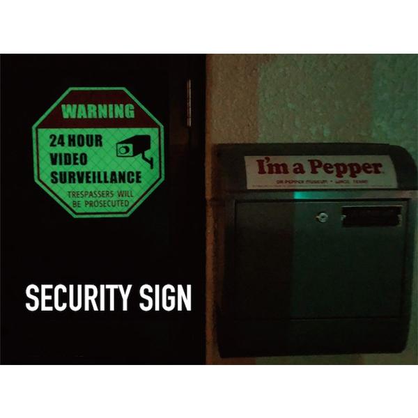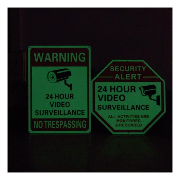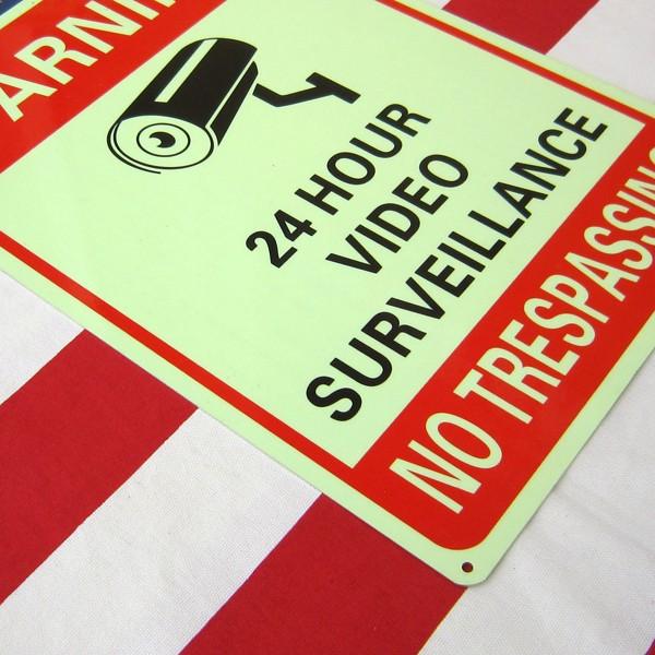 US セキュリティサイン 長方形 八角形 アルミ製 蛍光 グロウタイプ 暗闇で光る 防犯看板 警告看板 防犯カメラ看板 防犯カメラプレート アメリカ雑貨 ガレージ