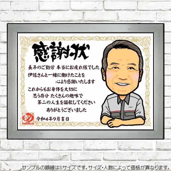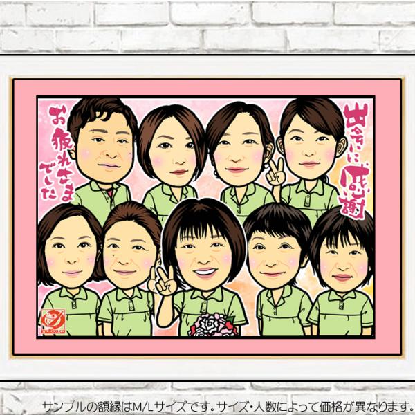 DF贈ってうれしい似顔絵感謝状/そっくりかわいい感謝の退職祝い/サイズ 人数変更対応/サプライズプレゼント/定年退職 栄転のお祝い 職場の仲間たちで贈り物