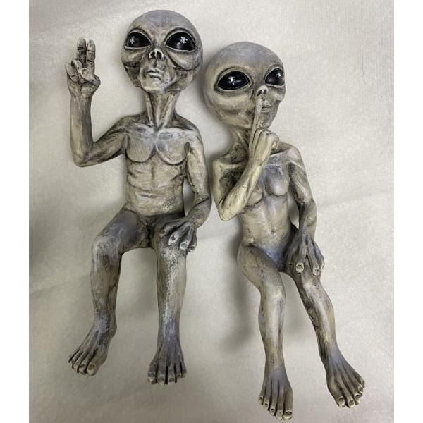 宇宙人 エイリアン 2体セット オブジェ 置物 グレイ 異星人 インテリア おもしろい雑貨 アンティーク ヴィンテージ ガーデンオーナメント かわいい 即納