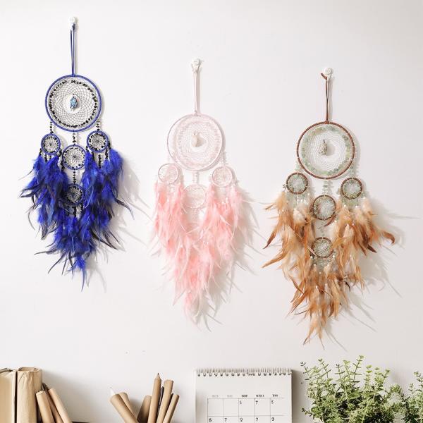 ドリームキャッチャー オーナメント モビール 羽 フェザー 天然石 原石 運気アップ 風水 厄除け 縁起物 開運 健康運 仕事運 家庭運 風水 インテリア お洒落