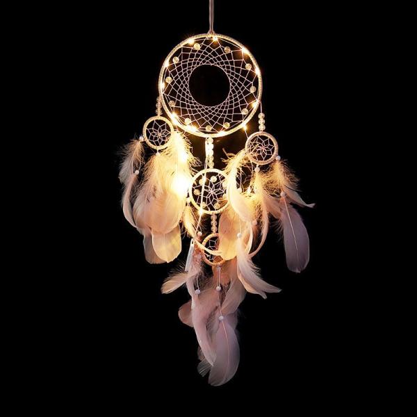 ドリームキャッチャー 風水 夢捕り 魔除け 厄除け 浄化 開運 インテリア 壁掛け 吊り下げ ライト付き LED 癒し 空間浄化 羽根 おしゃれ 玄関 寝室 風水グッズ