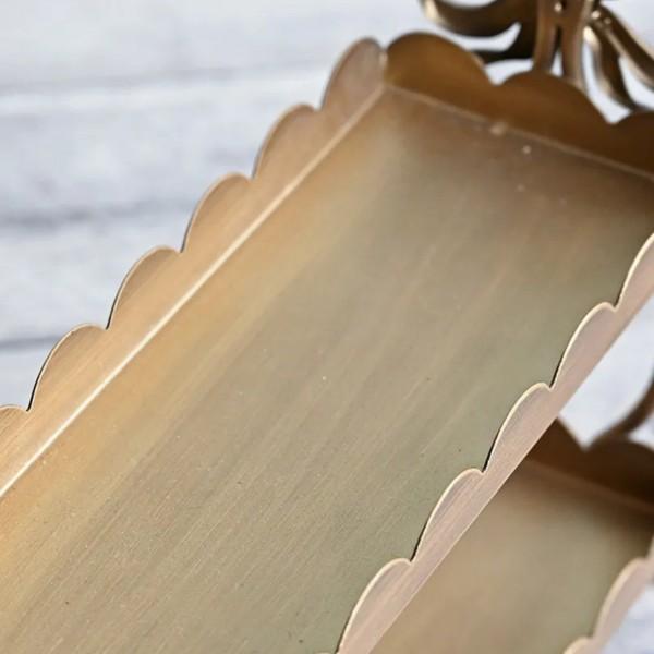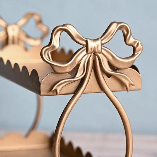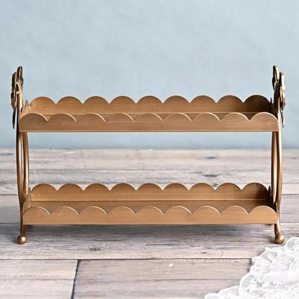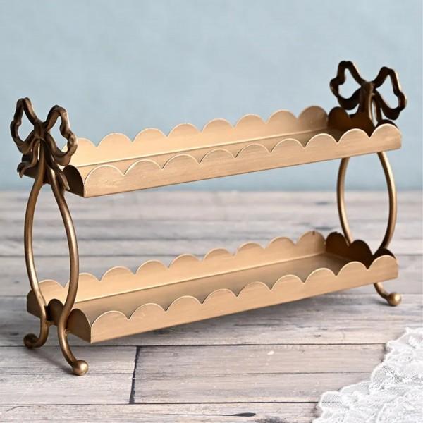アイアン 2段 シェルフ リボン 飾り棚 ラック ディスプレイスタンド ゴールド 金属製 かわいい(1513)おしゃれ ディスプレイトレイ 棚 飾り台 ミニラック