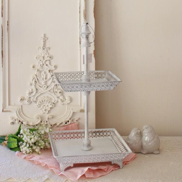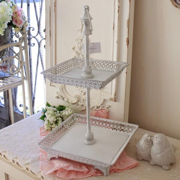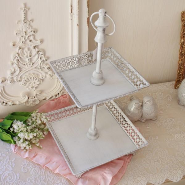 ホワイト 2段トレイ ケーキスタンド ディスプレイトレイ アフタヌーンティースタンド(1174) マチルドエム フランス マチルドマチルドM Mathilde M シャビーシ