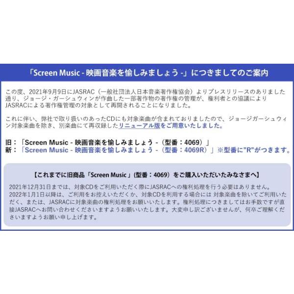 【試聴可能】著作権フリーCD BGM 店内 音楽 <名曲>Screen Music - 映画音楽を愉しみましょう -(4069R)