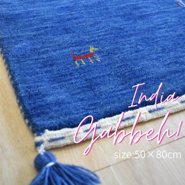 ラグ マット 玄関マット 50cm×80cm アクセントラグ スペースラグ スモールラグ ラグマット インド ギャベ ギャッベ ウール おしゃれ 手織り 可愛い 輸入 海外