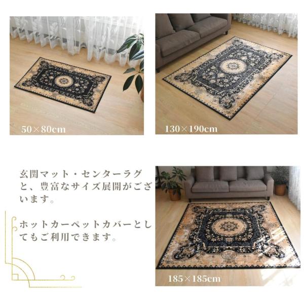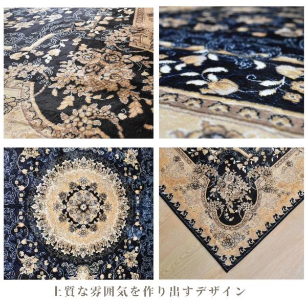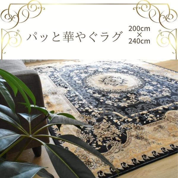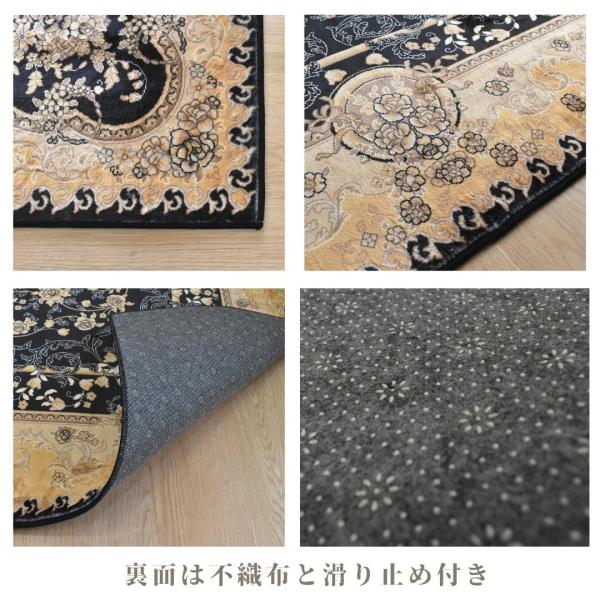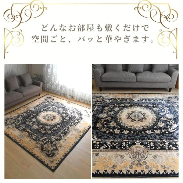 リビング ラグ カーペット メダリオン 200×240cm 3帖 3畳 おしゃれ クラシック 高級感 掃除しやすい 滑り止め付き ゴールド