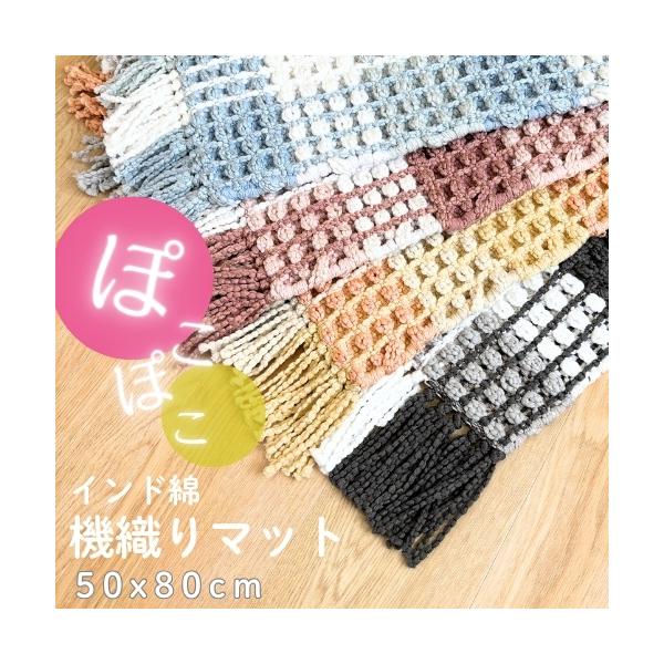 ラグ マット 玄関マット バスマット 50x80cm お洒落 おしゃれ かわいい インド製 軽い 軽量 カラフル 個性派 屋内 室内 ドアマット 黄 桃 青 黒 モノクロ 大判