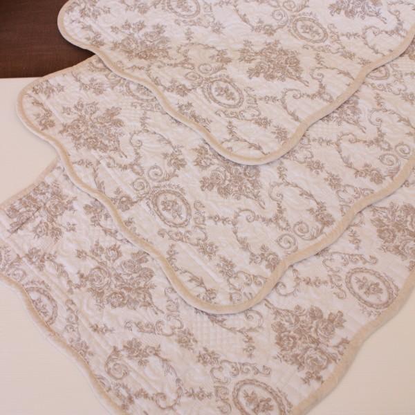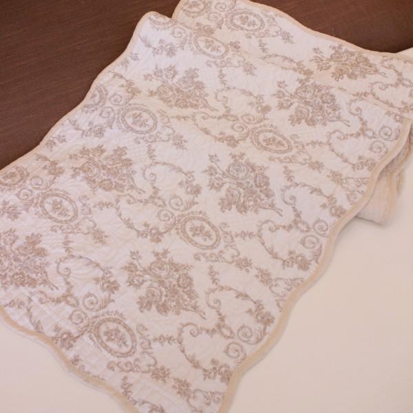 キルトマット ラグマット 滑り止め マット ロングシート 50×120 ベージュ アントワネットローズ バラ柄 座面カバー 洗濯可 綿100% コットン 薔薇 おしゃれ