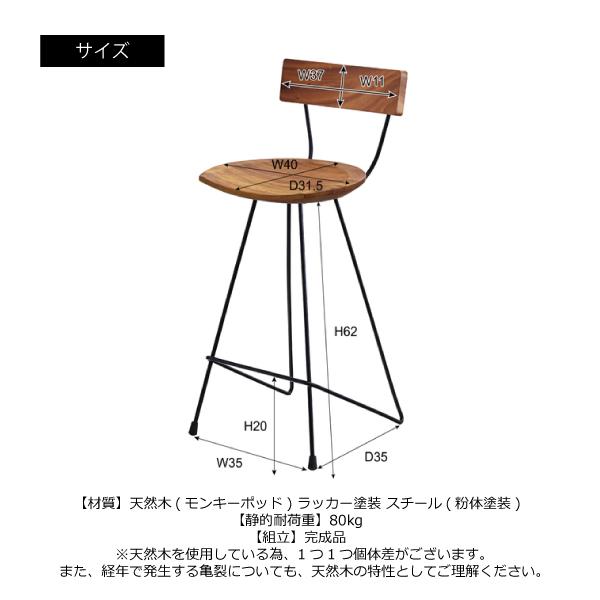 ウッドカウンターチェア JW-109 1脚 天然木 アイアン おしゃれ イス 椅子 いす バー ハイ ジェラルド カウンターチェア リビング カフェ