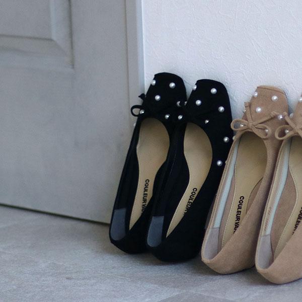 スクエアトゥ バレエシューズ パンプス 痛くない 幅広 甲高 ゆったり 3E 外反母趾 軽い リボン ローヒール クロールバリエ No.944201 セール ※交換返品不可