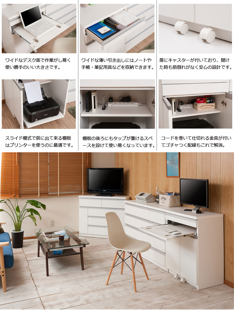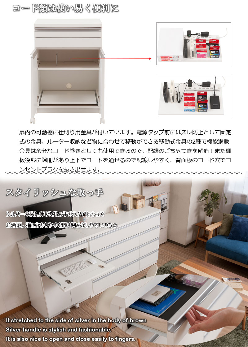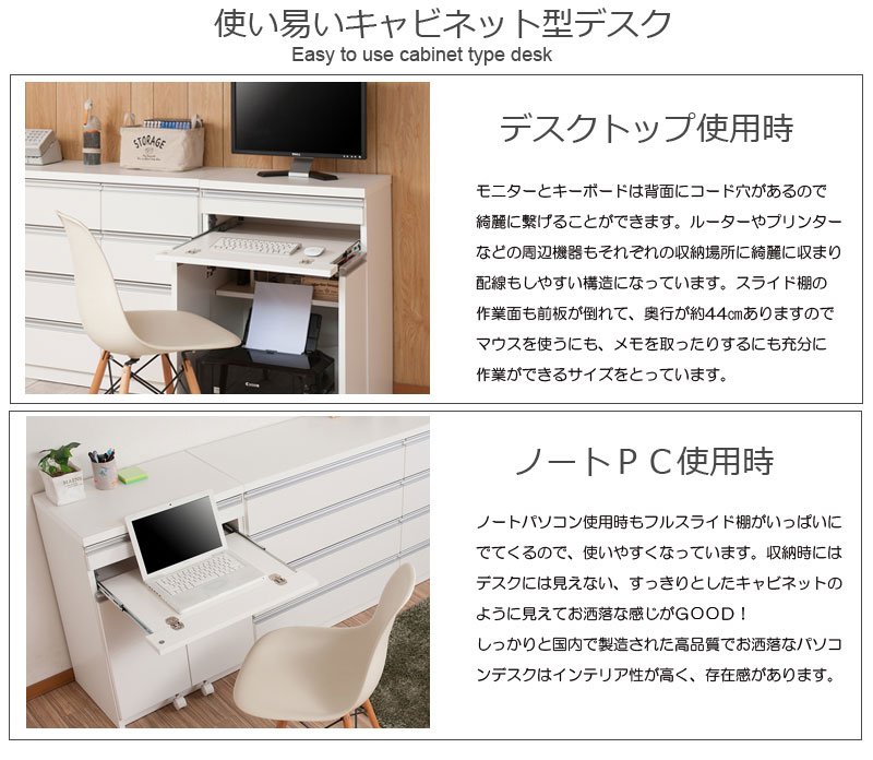 キャビネットデスク 幅60 ホワイト 白 完成品 折りたたみ パソコンデスク 省スペース プリンター収納 コンパクト 奥行40 日本製